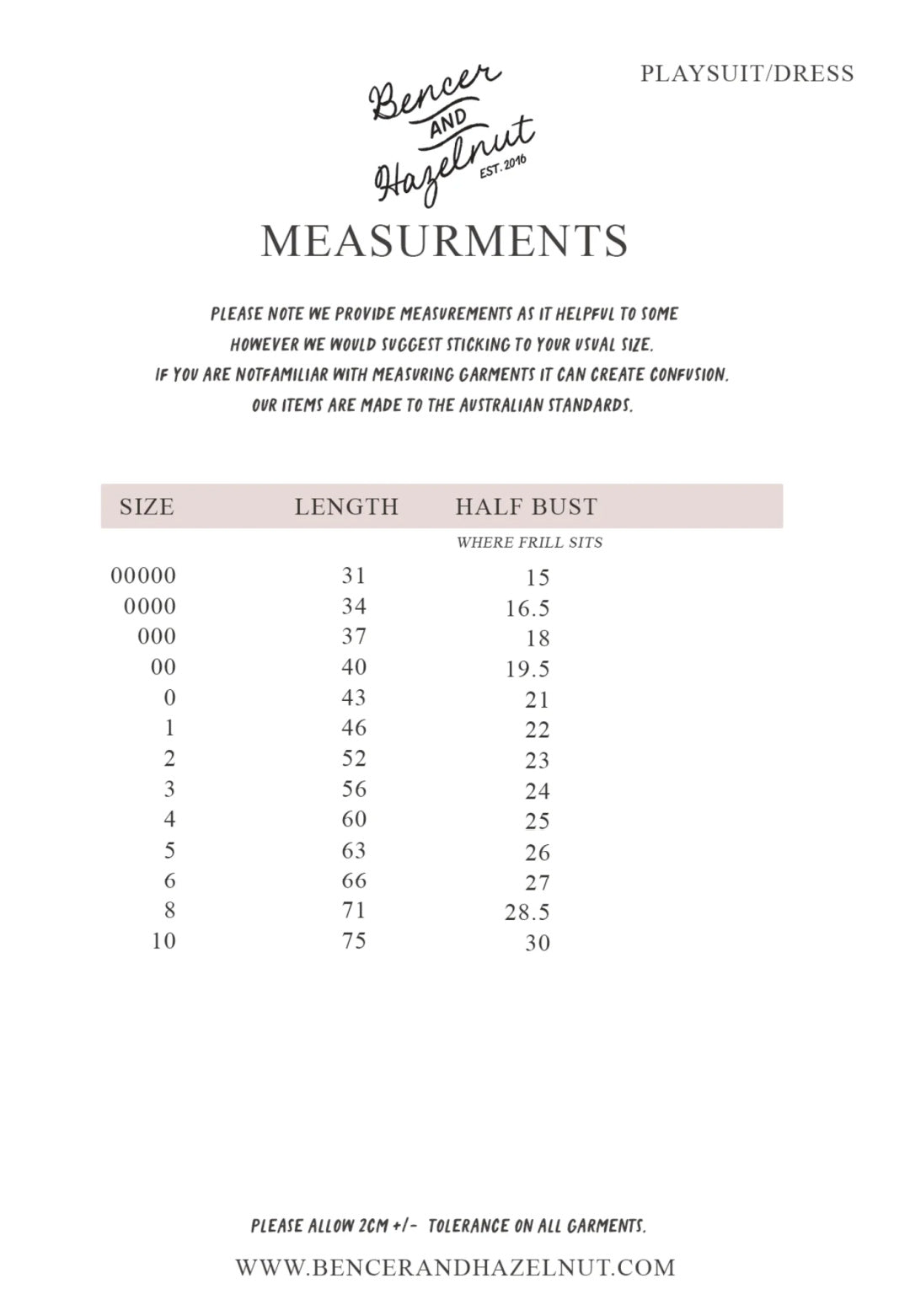 Beautiful velvet dress with embroidery, frill on the bodice and shoulder frill.  Playsuit features snap clips for easy nappy change.