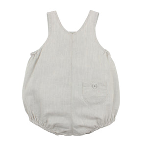 This smart cotton romper with buttoned straps features a front and back pocket, side front fake button opening elasticated legs and press stud crotch opening. Perfect for a naming day ceremony or special occasion.