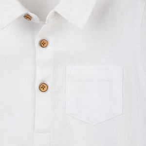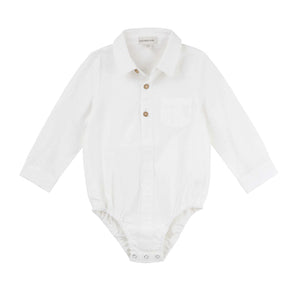 The Archie L/S Button Romper features a tailored collar, long sleeves, front button openings and a snap button closure at the base. Can be paired with the Finley Linen Shorts or Pants, bow tie and suspenders for the perfect special occasion look for your little man.