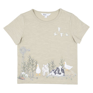 Bring some fun prints to your little ones wardrobe with this short sleeve tee. Featuring a crew neck and a farmyard animal print on the front hem, its the one piece you can't go past this Summer.