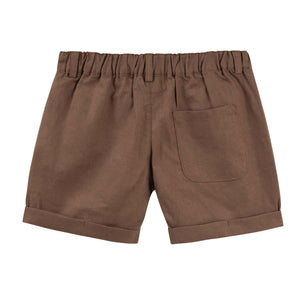 DESIGNER KIDZ BOYS FINLEY LINEN SHORTS - CHOCOLATE