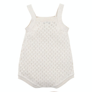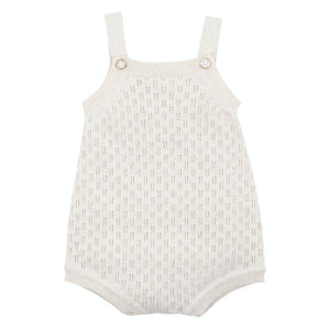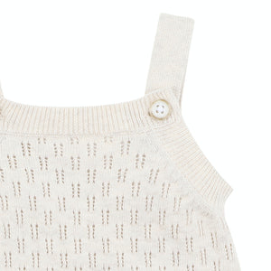 This gorgeous cotton knitted bodysuit features an all-over checkerboard eyelet design, adjustable button straps and press stud crotch opening. Perfect for newborn photos, a naming day ceremony or special occasion.