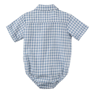 DESIGNER KIDZ OLIVER BLUE GINGHAM S/S ROMPER