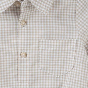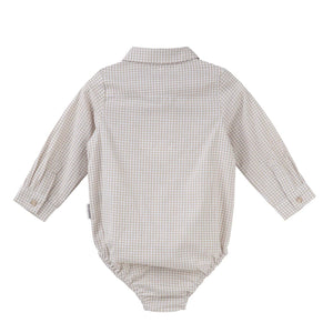 DESIGNER KIDZ OLIVER GINGHAM L/S ROMPER - OAT