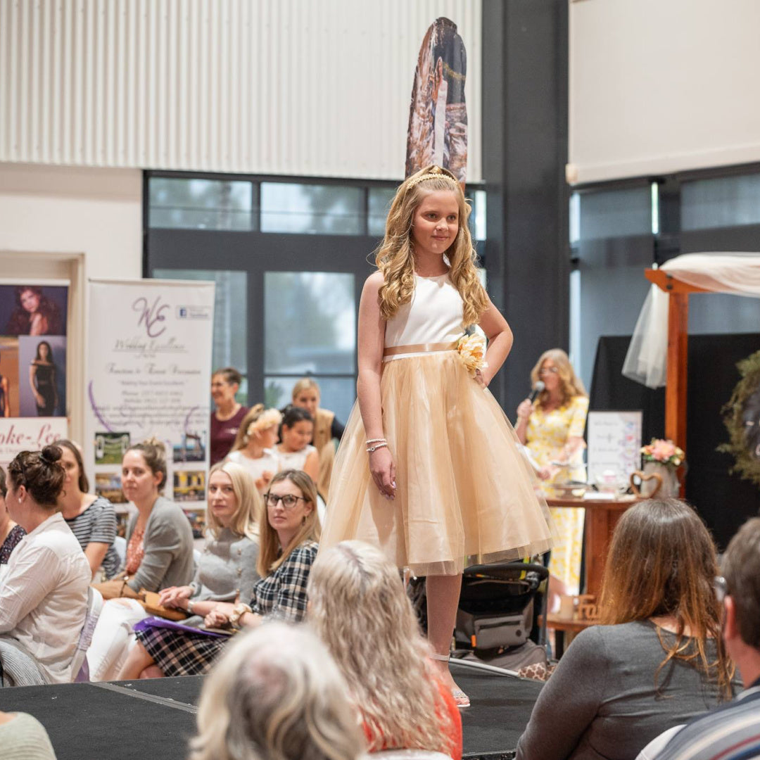 EXECUKIDS DRESS - EK05 HANNAH SATIN DRESS - CHAMPAGNE (PRE-ORDER)