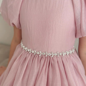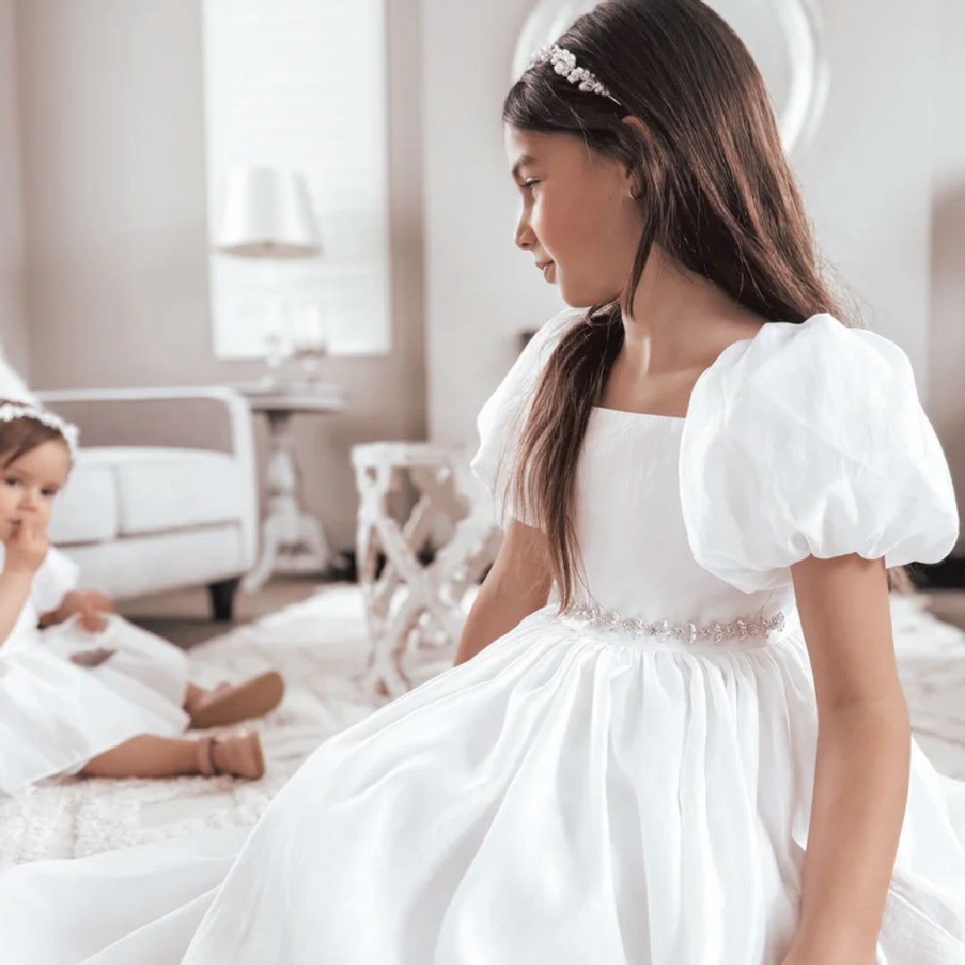 Add a touch of sparkle to your flower girl's dress for her special wedding walk or enhance the beauty of any of our girls' First Communion dresses with the Fleur Belt.