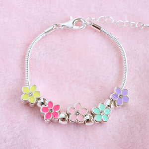 Bright colours in soft shades bring this bouquet of pastel flowers to life. With five individual charms, this bracelet will complement any outfit, formal or casual. Like wearing Spring on your wrist, it is a treasure trove of colours and blooms to remind you of the season.