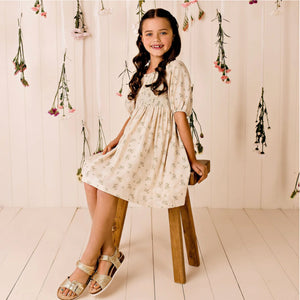DESIGNER KIDZ THEA FLORAL PUFF SLEEVE DRESS