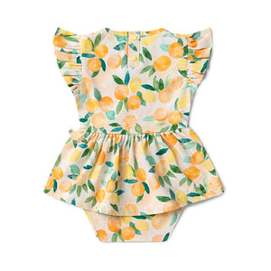 Soft and stretchy, our dresses are easy-care and very comfy for bub. The sizes up to and including size 1 come with a snap underbody to go over a nappy. Size 2 and over doesn't have the snap body feature. We have really focused on the details and ensured the dresses up to size 1 are short enough so that a baby can crawl and not trip over the skirt. Size 2+, when they're walking, is a bit longer.