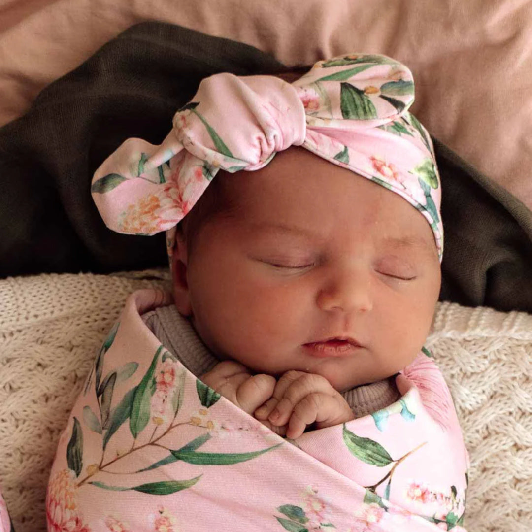Our organic cotton Pink Wattle topknot is made with GOTS Certified Organic Cotton CU 1182228.