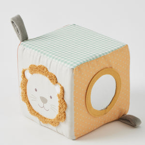 Cute and smart, the Plush Safari Block is designed to delight a baby’s developing mind with soft-toned graphics, tags, and textures. The enclosed rattle will delight little ones, engaging all their senses and creating hours of fun.