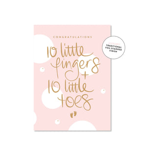 JUST SMITTEN GREETING CARD - 10 LITTLE FINGERS AND TOES | PINK