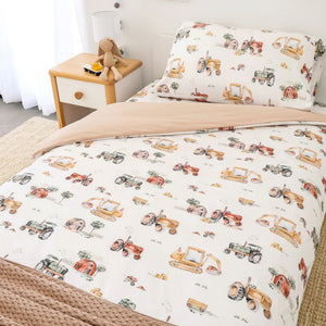 Snuggle Hunny's quilt covers are made from our signature organic jersey cotton - snuggly soft and certified organic! Available in a range of our popular hand-painted prints, including Diggers & Tractors.