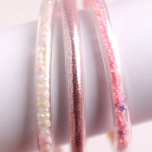 Achieve the layered look in an instant with Pink Glitter Elastic Bracelets! Including three bracelets in the set, each one is filled with tiny beads, shiny stars, or sparkling glitter, creating a magical look which dazzles with colour and texture.