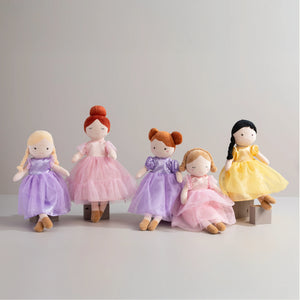 Delight your little princess with our Plush Princess companion dolls. Designed for your little one’s imagination, or to be the perfect cuddle companion. Take along in the pram or bring along to nap time, they are soft to hold, and even softer to cuddle.