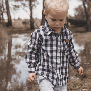 LOVE HENRY BOYS DRESS SHIRT - LARGE NAVY CHECK