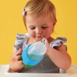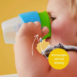 We recommend from at least 6 months of age until you’re confident that your tot can manage open cup drinking either at home or on the go. However, it goes without saying that this will vary and it’s important to follow your little one’s lead. Some tots may take to the 360 cup straight away, and other may need a few tries to get used to the silicone rim and flow so be patient and perhaps model it for them at first. The handles are wide so that kids can easily grip, but also so that parents can lend a hand in those early days to model the action of lifting and tilting too.
