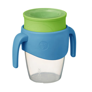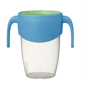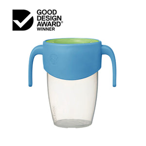 We recommend from at least 6 months of age until you’re confident that your tot can manage open cup drinking either at home or on the go. However, it goes without saying that this will vary and it’s important to follow your little one’s lead. Some tots may take to the 360 cup straight away, and other may need a few tries to get used to the silicone rim and flow so be patient and perhaps model it for them at first. The handles are wide so that kids can easily grip, but also so that parents can lend a hand in those early days to model the action of lifting and tilting too.