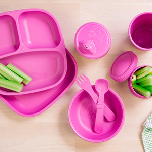 These colourful Re-Play bowls are perfect for soups, snacks and cereal. This deep bowl can hold enough food for even the hungriest toddler. The deep walls help toddlers learning to use utensils and the gently curved sides make it very easy to scoop out the contents.