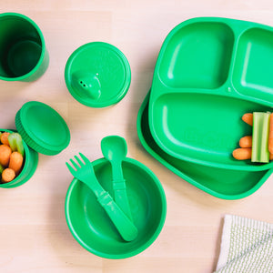 These colourful Re-Play bowls are perfect for soups, snacks and cereal. This deep bowl can hold enough food for even the hungriest toddler. The deep walls help toddlers learning to use utensils and the gently curved sides make it very easy to scoop out the contents.