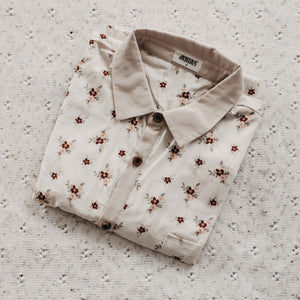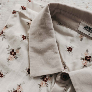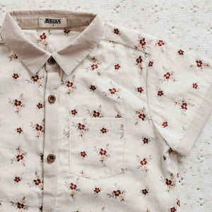 Boys collared dress shirt in floral print.  Features button down front and front pocket. Pair with the boys Beige Shorts for the complete outfit.