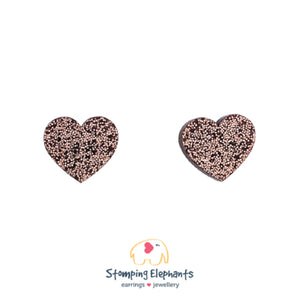 STOMPING ELEPHANTS BRONZE GLITTER HEART EARRINGS (SMALL)