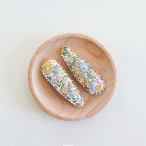 Sold in sets of two these clips are simple and timeless. They feature a unique scalloped edge detail and are made using a range of quality fabrics.
