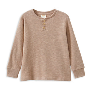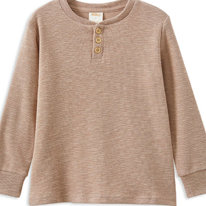 Wear it on its own for a classic look, or layer it under an overshirt for a sophisticated winter ensemble. This versatile piece combines comfort and style, allowing your little one to look effortlessly fashionable. With the Mocha Henley in their wardrobe, getting dressed will be both easy and stylish—fuss-free fashion at its best!
