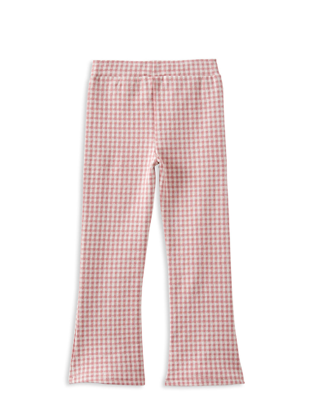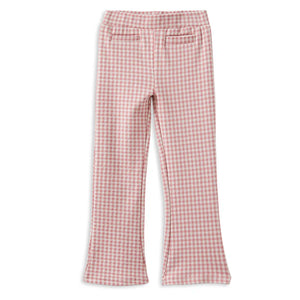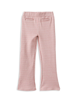 Milky Clothing Rose Check Flared Pant. A stylish and trendy addition to any wardrobe. Featuring an all-over rose check pattern, these adorable pants are enhanced by their playful flared leg design. Cute welt pockets at the hips add a fun detail that sets them apart.