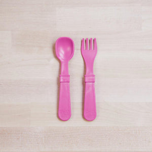 Great care was taken when designing Re-Play utensils to make them as easy as possible for small hands to use. Their shape and size make them easy to hold. The spoons are deep enough to allow food to reach the child's mouth, rather than spill back onto the plate. The forks have teeth which are sufficiently long to spear food but not so long that they become fragile. Similarly, the teeth are wide enough to make them strong, so they won’t break.