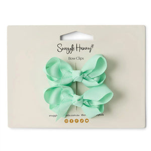 SNUGGLE HUNNY BOW CLIPS - SMALL PIGGY TAIL PAIR - BABY GREEN